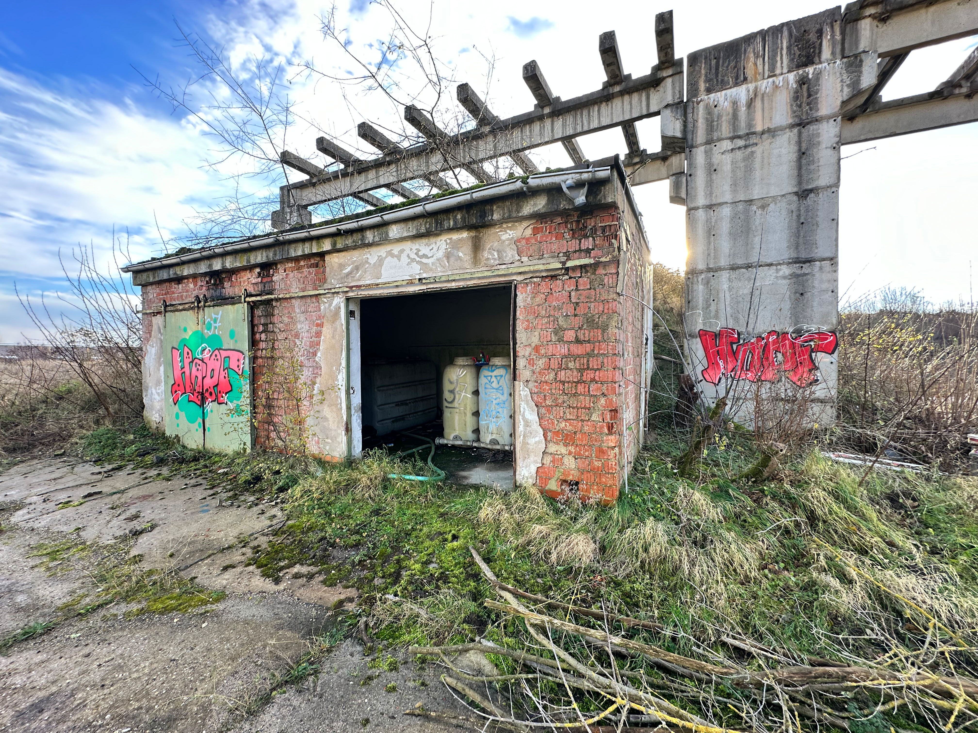 Alle Gebäude sind sanierungs- und ausbaubedürftig, bieten jedoch nutzbare Rohbauten. Die Halle ist derzeit vermietet, kann aber kurzfristig gekündigt werden.