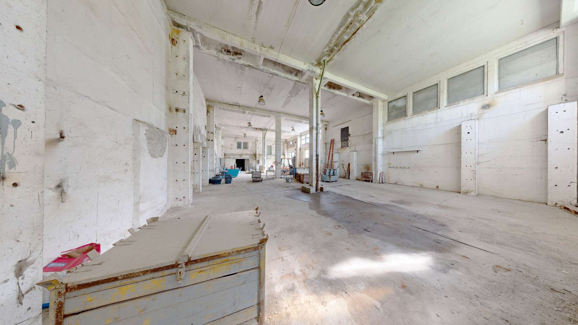 Das Areal ist umfangreich bebaut und verfügt über mehrere Bestandsgebäude mit unterschiedlicher Struktur und Nutzungstiefe. Sämtliche Gebäude befinden sich in sanierungs- und ausbaufähigem Zustand, stellen jedoch nutzbare Rohbauten dar und eröffnen vielfältige Entwicklungsoptionen.