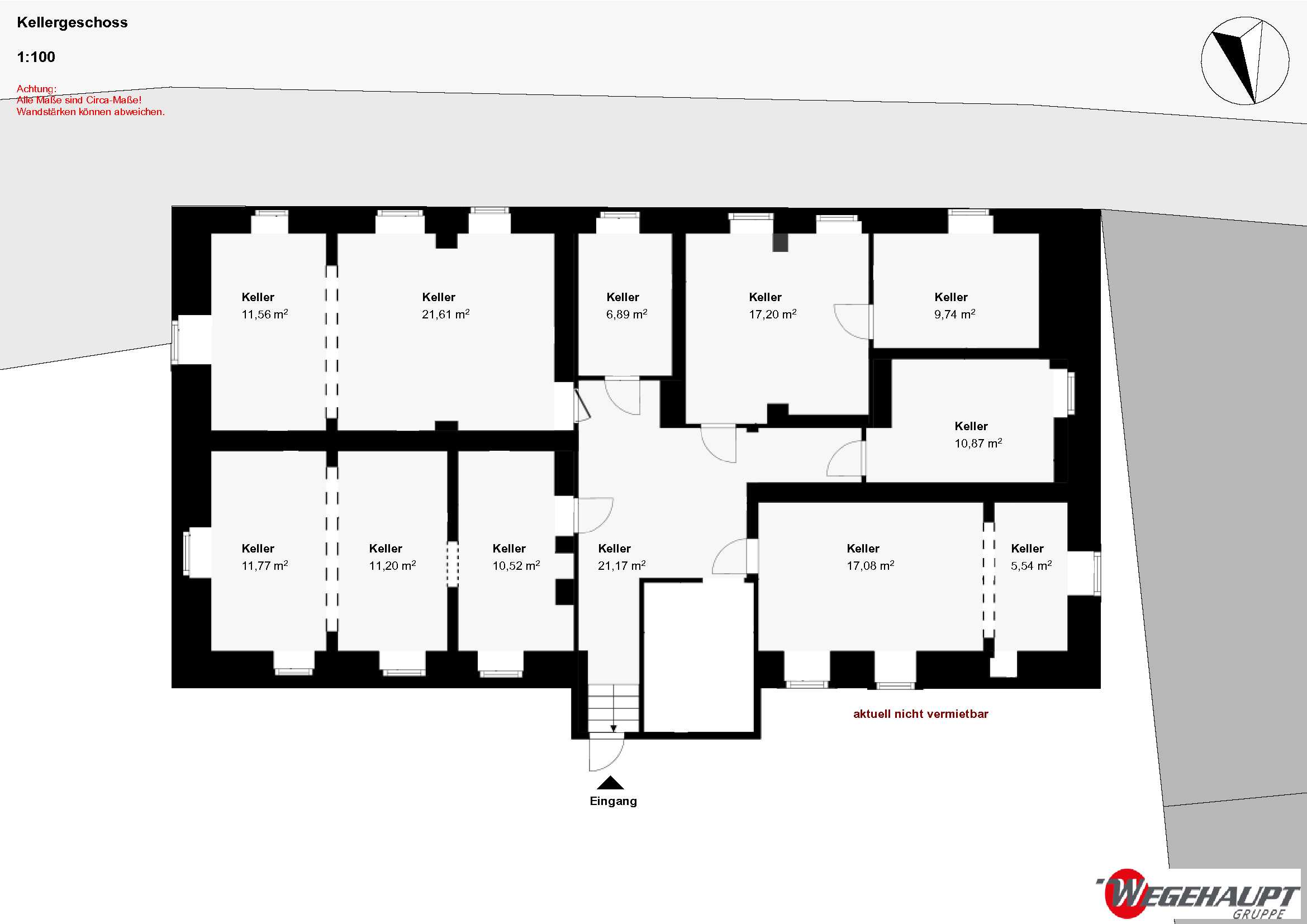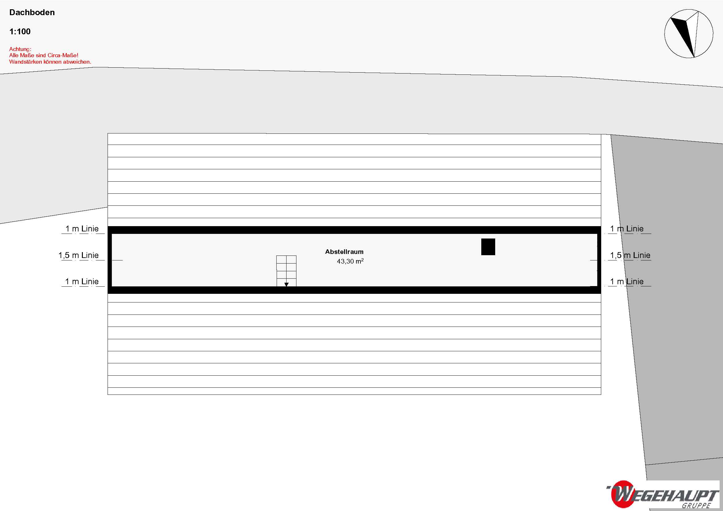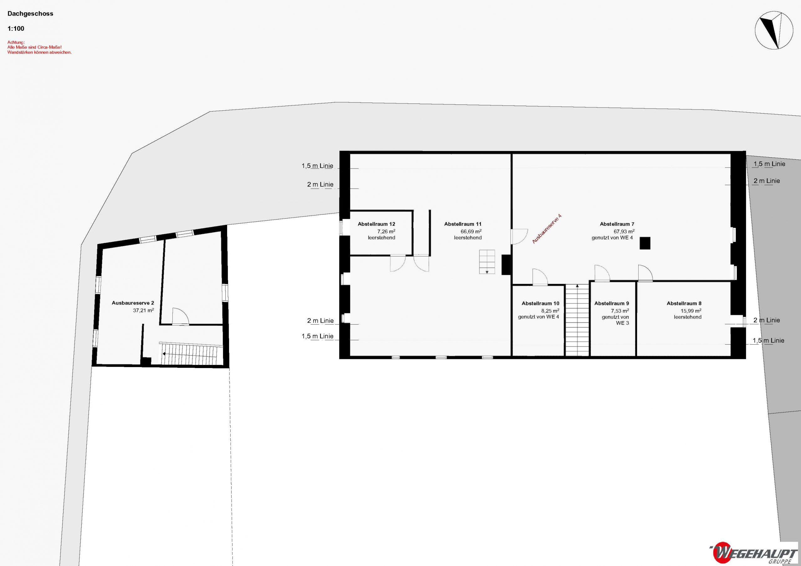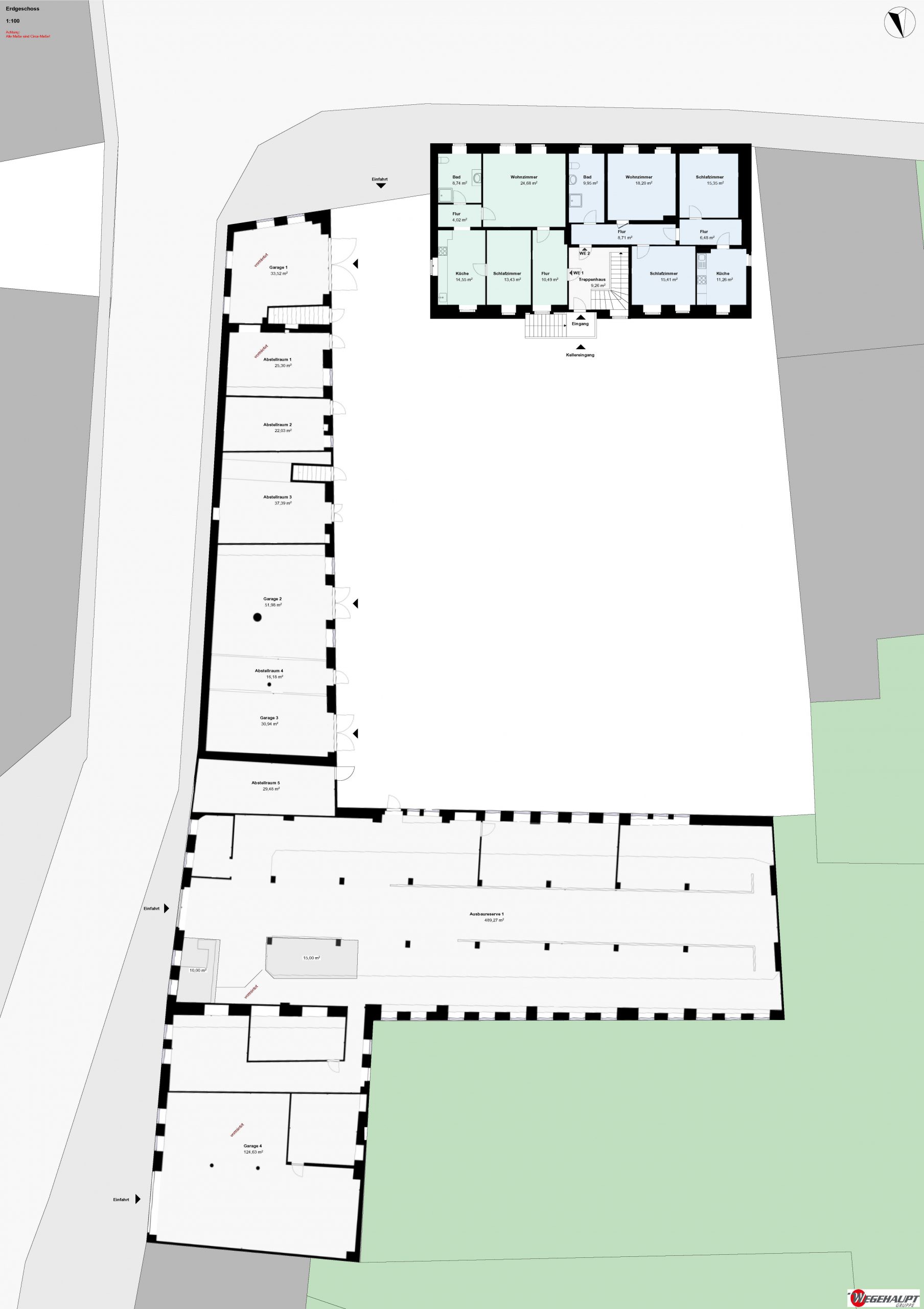 ACHTUNG, wir haben ein Grobaufmaß gemacht, die m² können geringfügig abweichen!