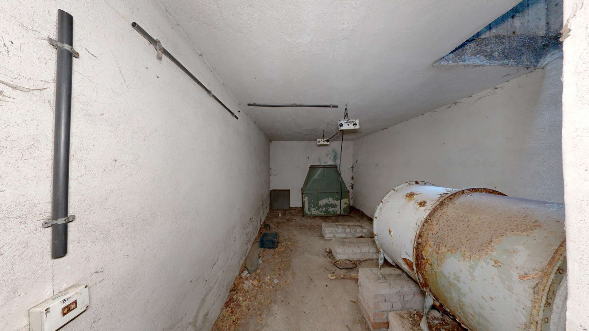 Die Anlage verfügt über mehrere kleinere Räume sowie einen großzügigen Hauptbereich mit offener Wandstruktur. Mit gezielter Renovierung lässt sich der Bunker in einen autarken Schutzraum umwandeln – ideal als privater Rückzugsort, Krisenunterkunft oder sicheres Lager für Vorräte und wertvolle Ressourcen.