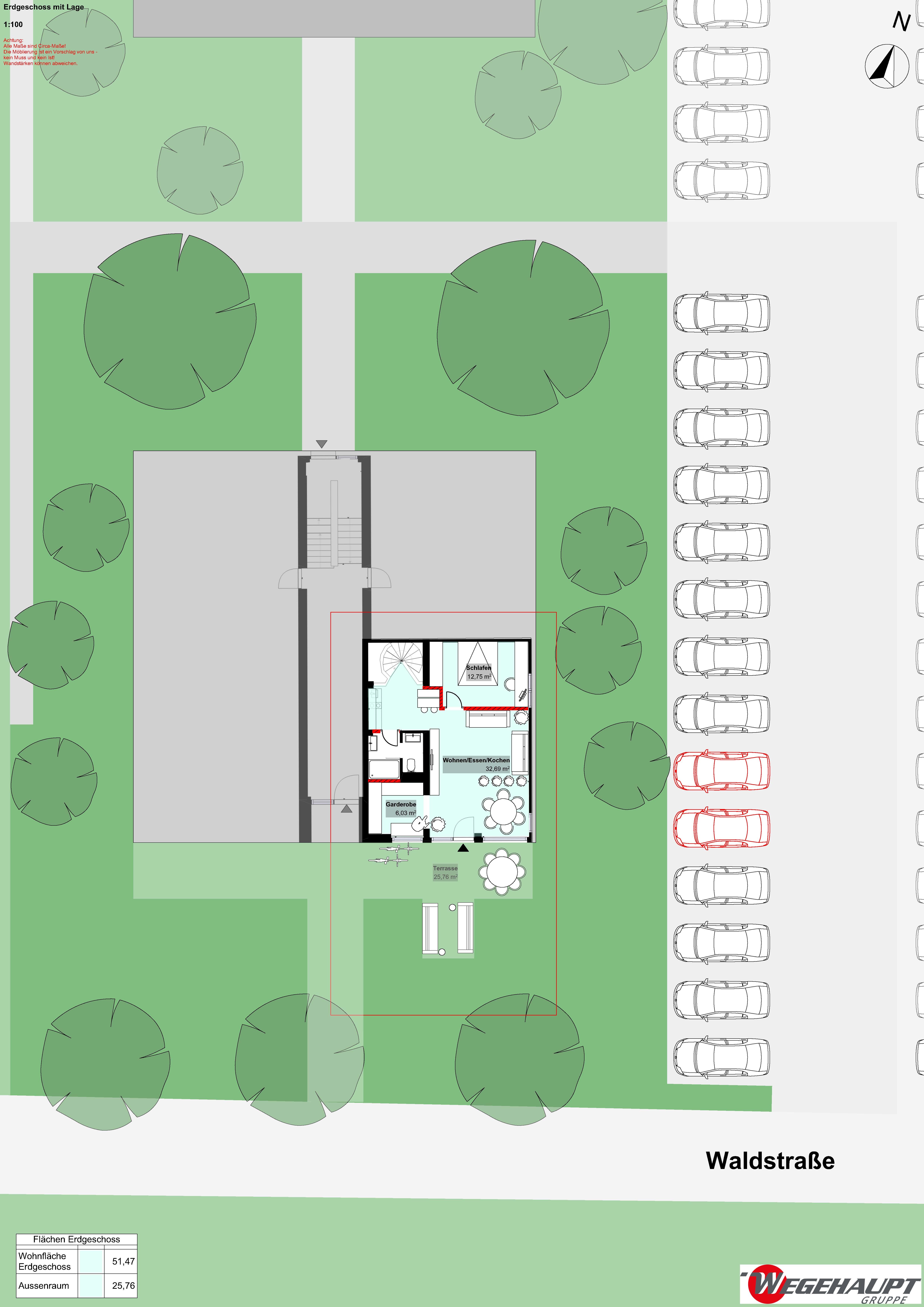 ACHTUNG, wir haben ein Grobaufmaß gemacht, die m² können geringfügig abweichen!